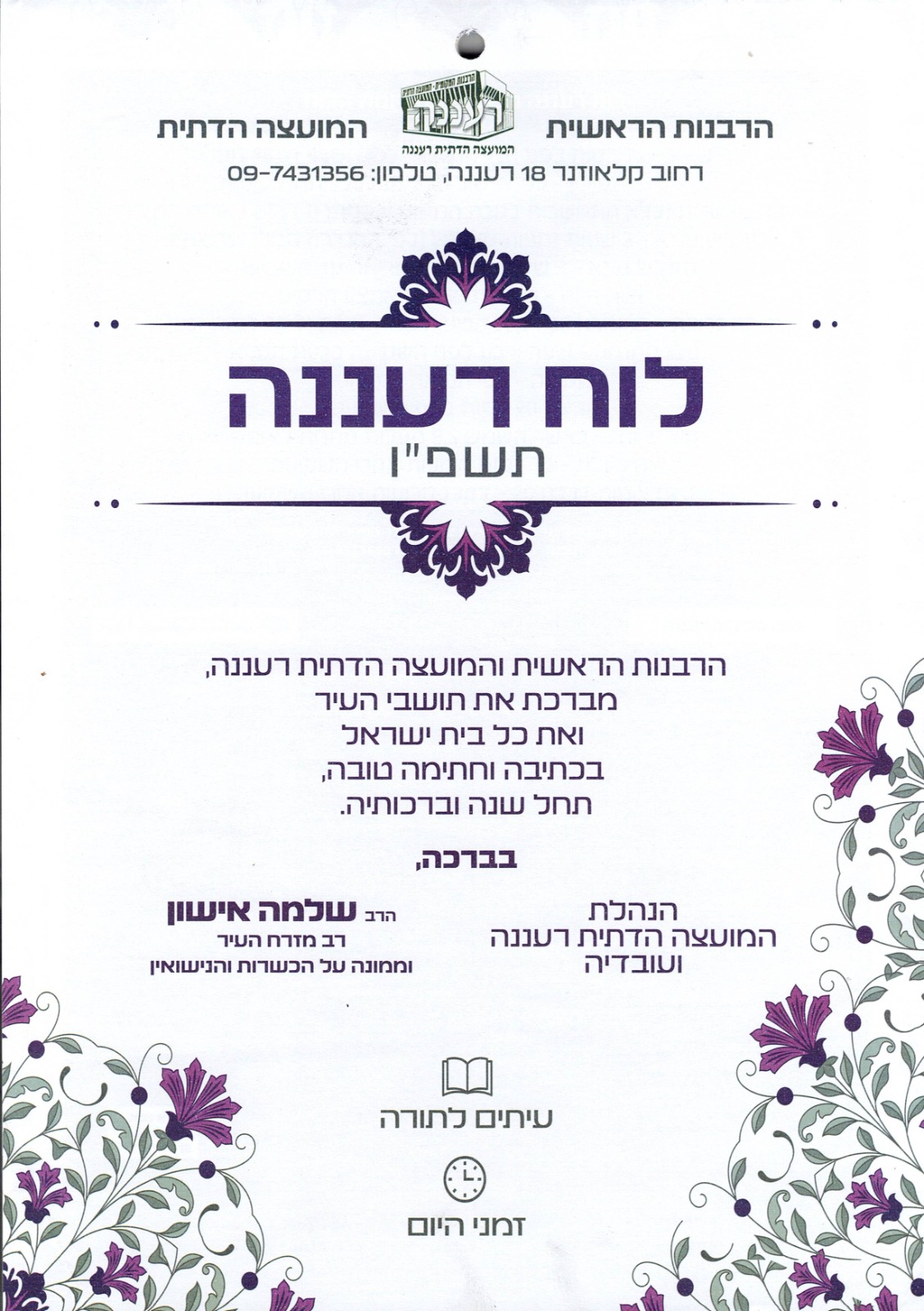 כמדי שנה, ניתן להגיע לרכוש במשרדי המועצה הדתית רעננה את לוח זמני רעננה.
